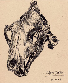 decrepit bones and imprints from such creatures as: unicorns, fairies, dragons and sphinx. Drawing